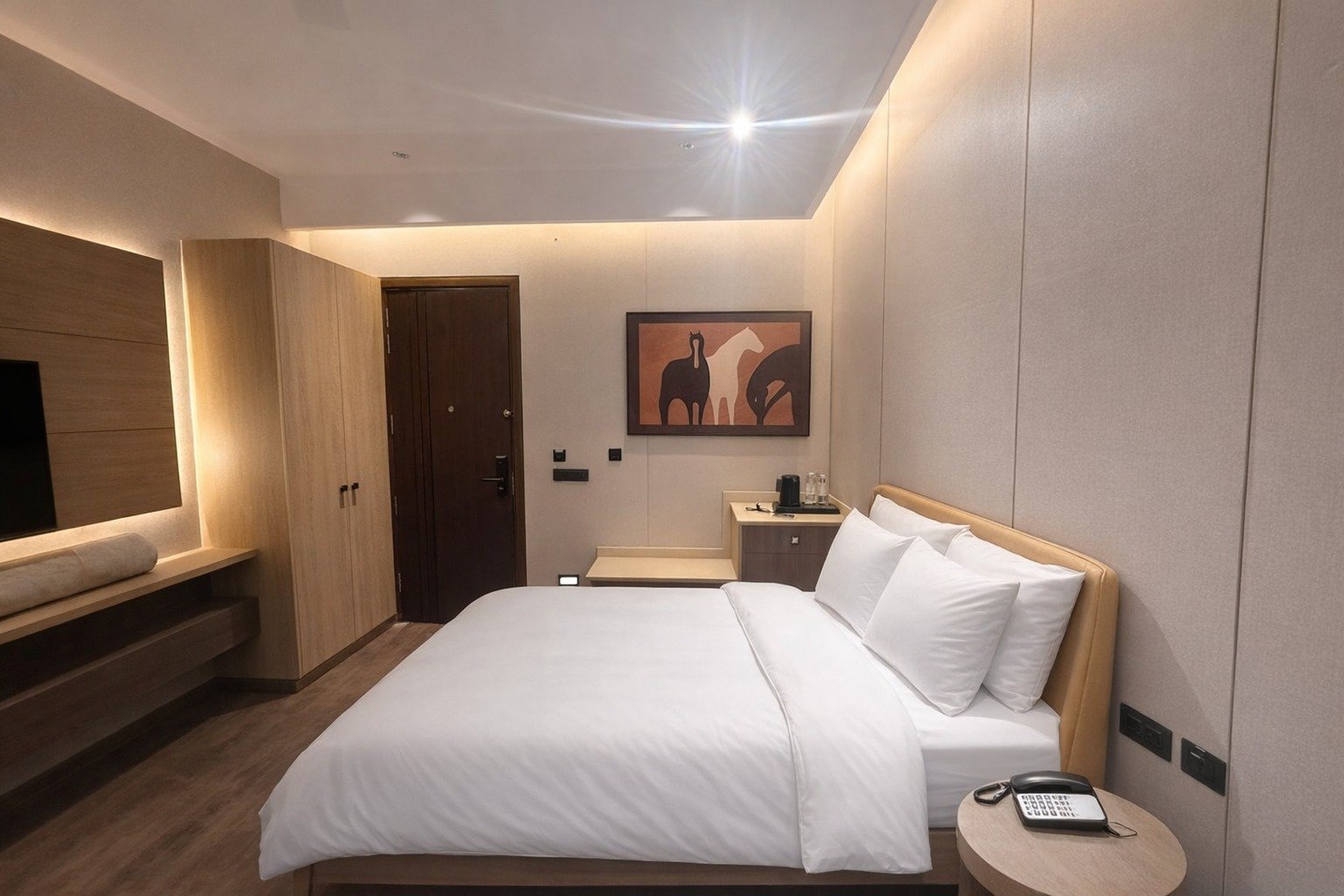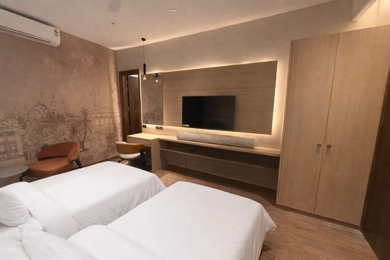 The rooms are tastefully decorated and well-appointed with all the essential amenities to ensure a comfortable stay. Each room comes with air-conditioning, comfortable beds, clean linens, a flat-screen smart TV, High speed Wi-Fi, In-room dining service, Tea/ Coffee Maker and premium toiletries which one requires while travelling.