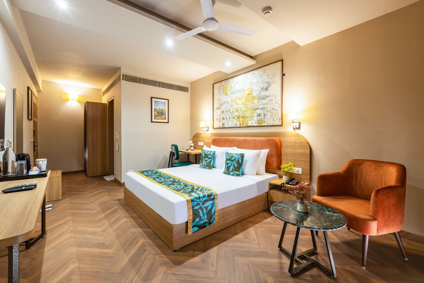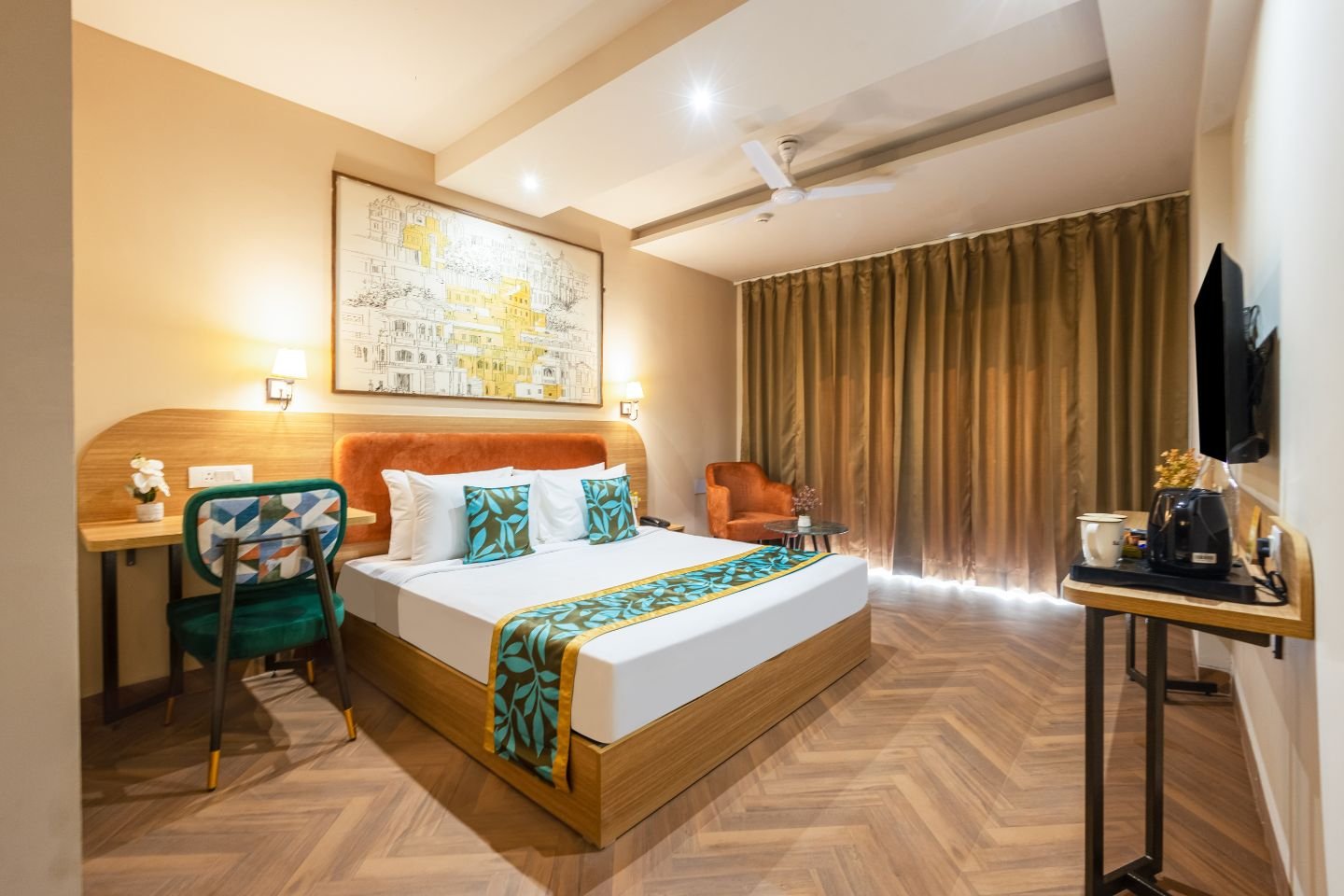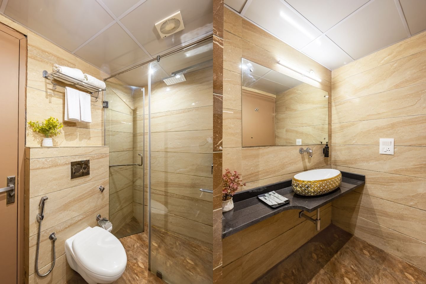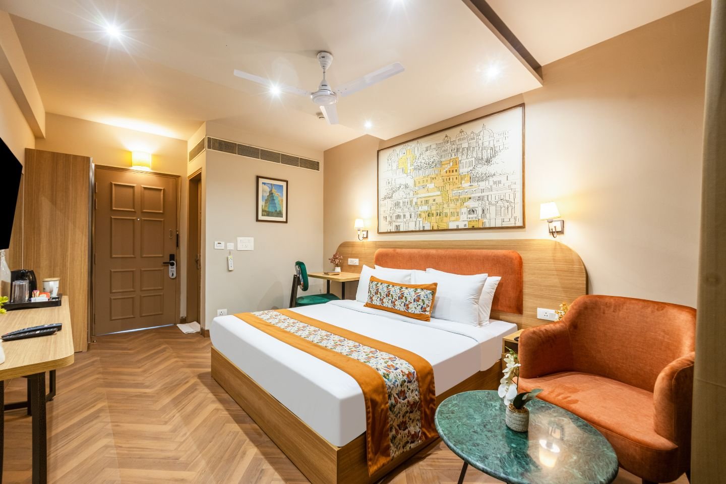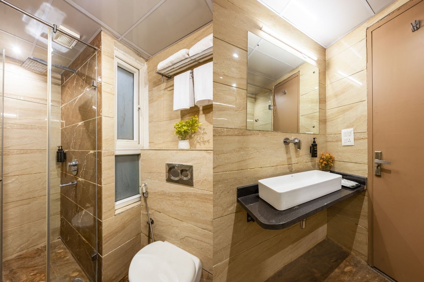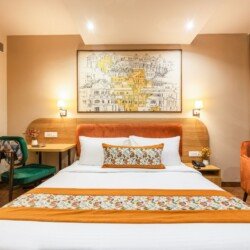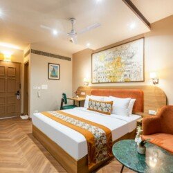 The rooms are tastefully decorated and well-appointed with all the essential amenities to ensure a comfortable stay. Each room comes with air-conditioning, comfortable beds, clean linens, a flat-screen smart TV, High speed Wi-Fi, In-room dining service, Tea/ Coffee Maker and premium toiletries which one requires while travelling.