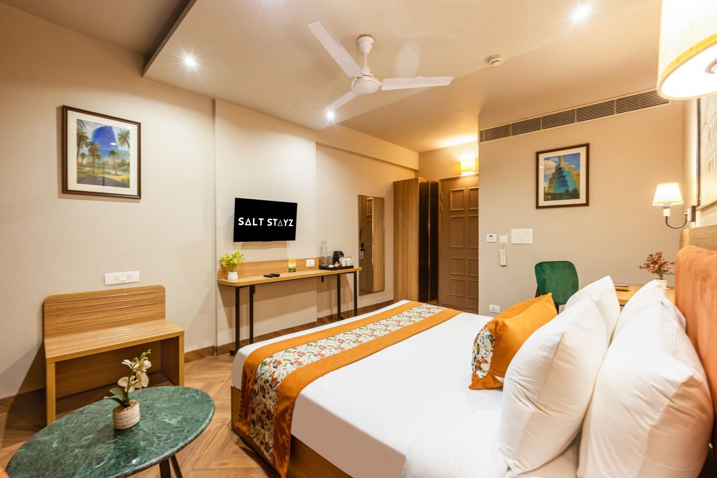 I had a sour experience at SaltStayz Corporate Suites - Golf Course Road, Gurugram. The room was lazily maintained—no water, missing kettle, and a dirty bathroom with a urine stench. I had to call the room service twice to get something done. The air conditioning was unreliable, failing twice during my stay which also made creepy noises in the middle of the night, disrupting my sleep. To top it off, the Wi-Fi was painfully slow, ruining an important interview which was the sole purpose of my stay at their property. Adding to the misery, the water supply went off during my shower. The staff was polite but turned out to be unresponsive and dismissive when needed. Be mindful when booking—my stay was far from the positive reviews I read and in no way relaxing.